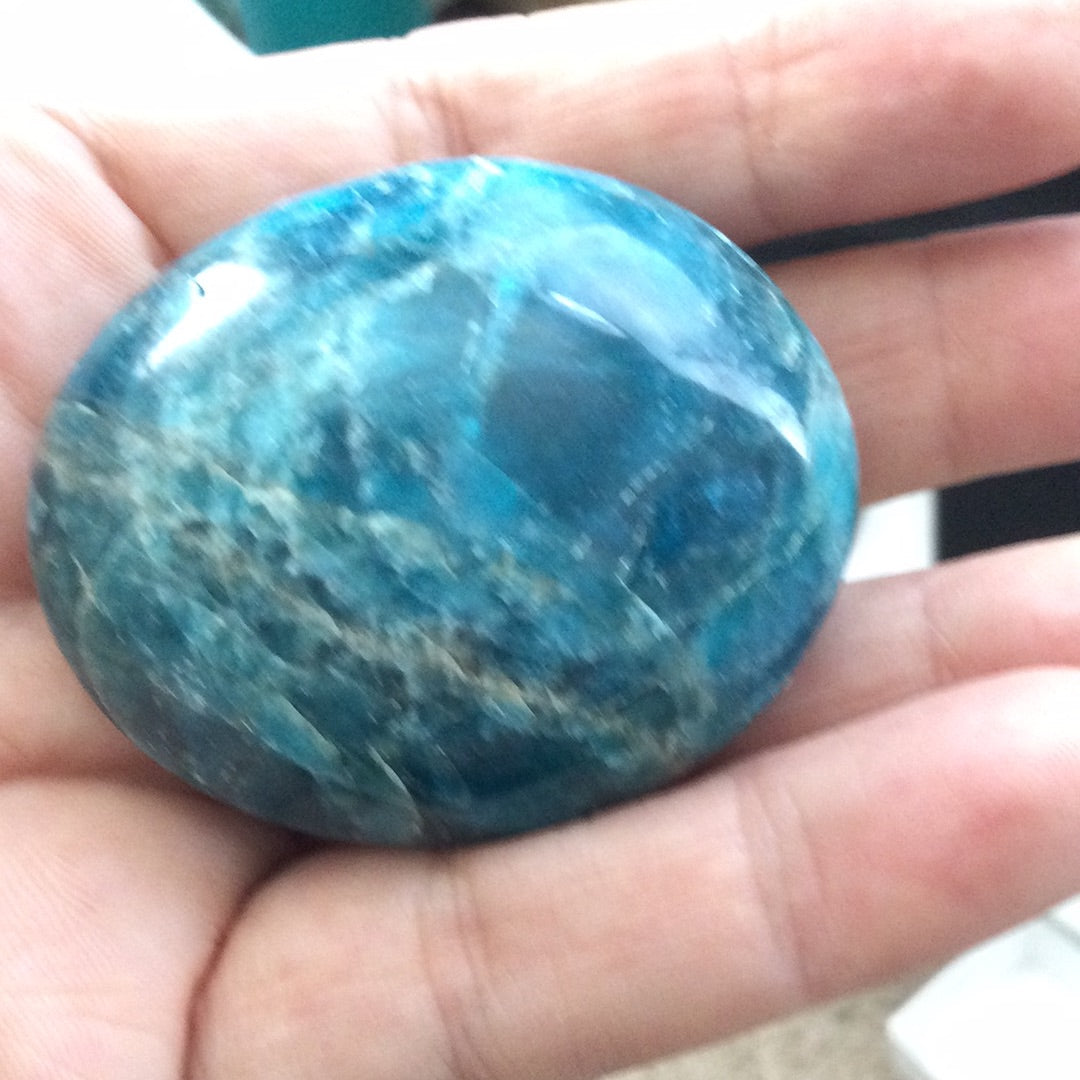 These dark, smooth palm stones are a beautiful, ocean blue. Apatite eases sorrow, apathy and anger. It calms the mind and stops the need to over eat or eat emotionally. As it draws away negativity and allows us access to our intellect and creativity we open to our inner selves. This is a stone that is helpful for hyperactivity and autism.