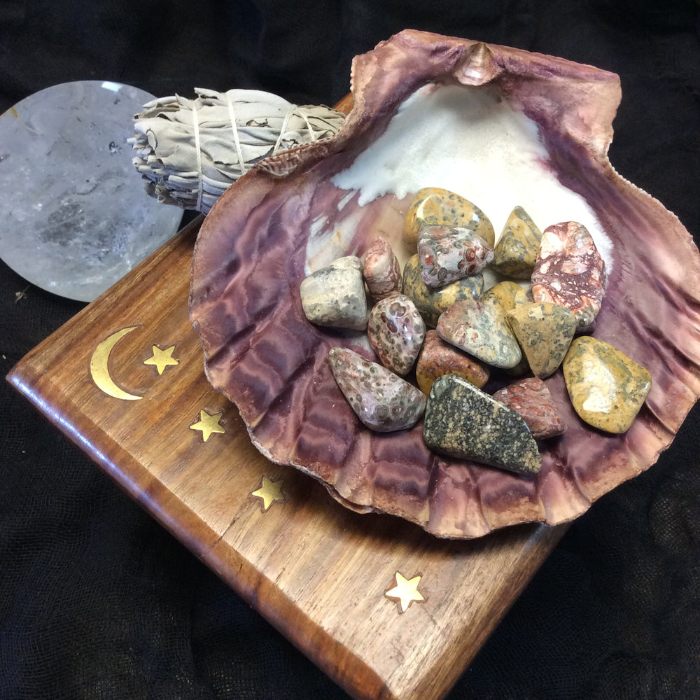 This breed of jasper works with the Air and Earth Elements. It is excellent at creating connections between the human world and the animal kingdom, therefore it can strengthen the bond between children and animals as well as soothe animal bites and insect stings. Leopardskin jasper is also a stone of regeneration and helps you to look and feel younger. It is good for all skin problems, especially those with viral origins. It will help speed up emotional healing after a trauma.