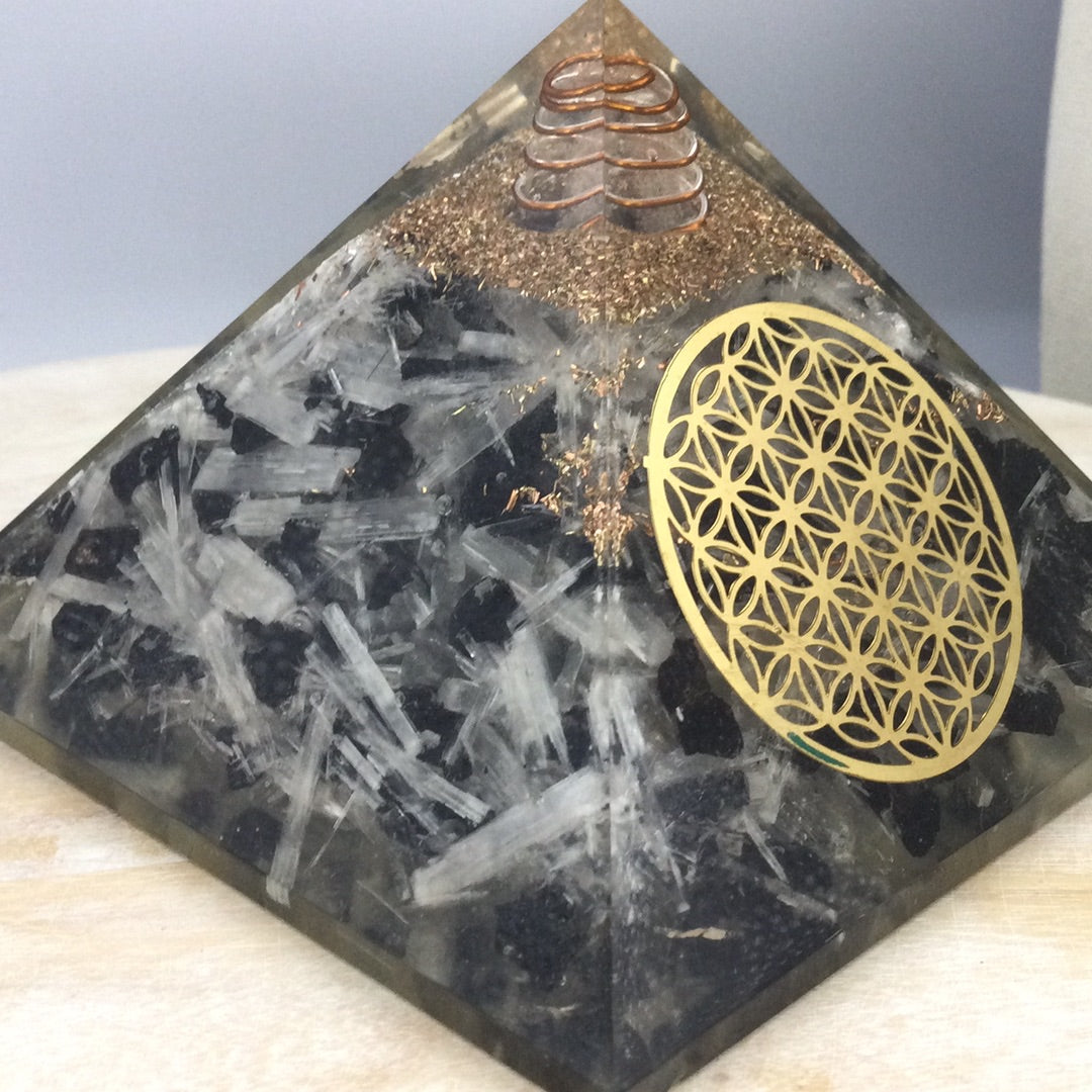 2.5” tall x 3.5” wide. This is BIG!! Orgonite is a protection against EMF’s and negative energy. It is used to clear the body of the impacts of electromagnetic waves. Orgonite keeps the air and life force in the home clean and positive.